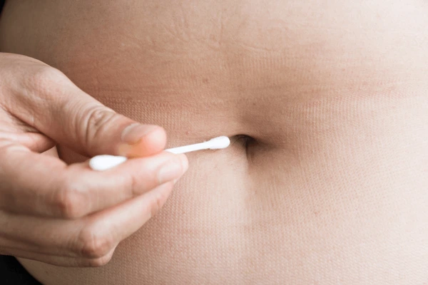 Saying so she started cleaning her navel.