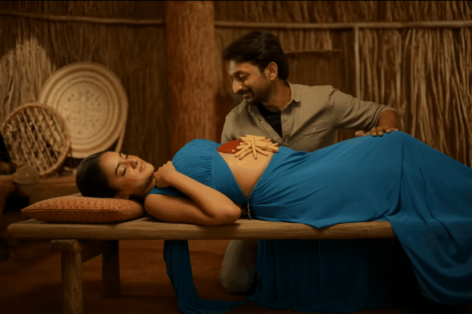 He saw her cleaning the navel and understood what had happened. He wanted to say many things but got struck on where to start. He got courage and said, “He gave me 2 months time”.